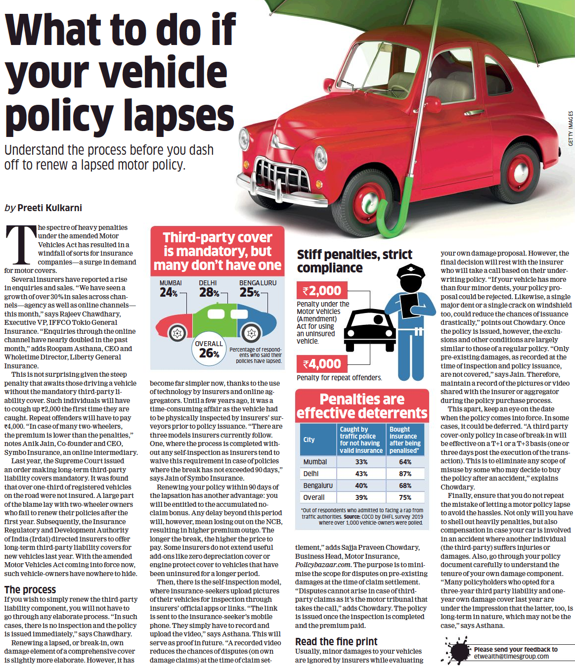 In case an untoward event leads to filing a claim, inform the insurer about the damages at the earliest. Depending on the nature of the claim, you will need to fill a form, lodge an FIR with the police and share a copy of the FIR with the insurer. You will also have to submit the details about the loss or damage and the quantum of claim you are making with all the necessary documents. Remember to keep all your bills intact.