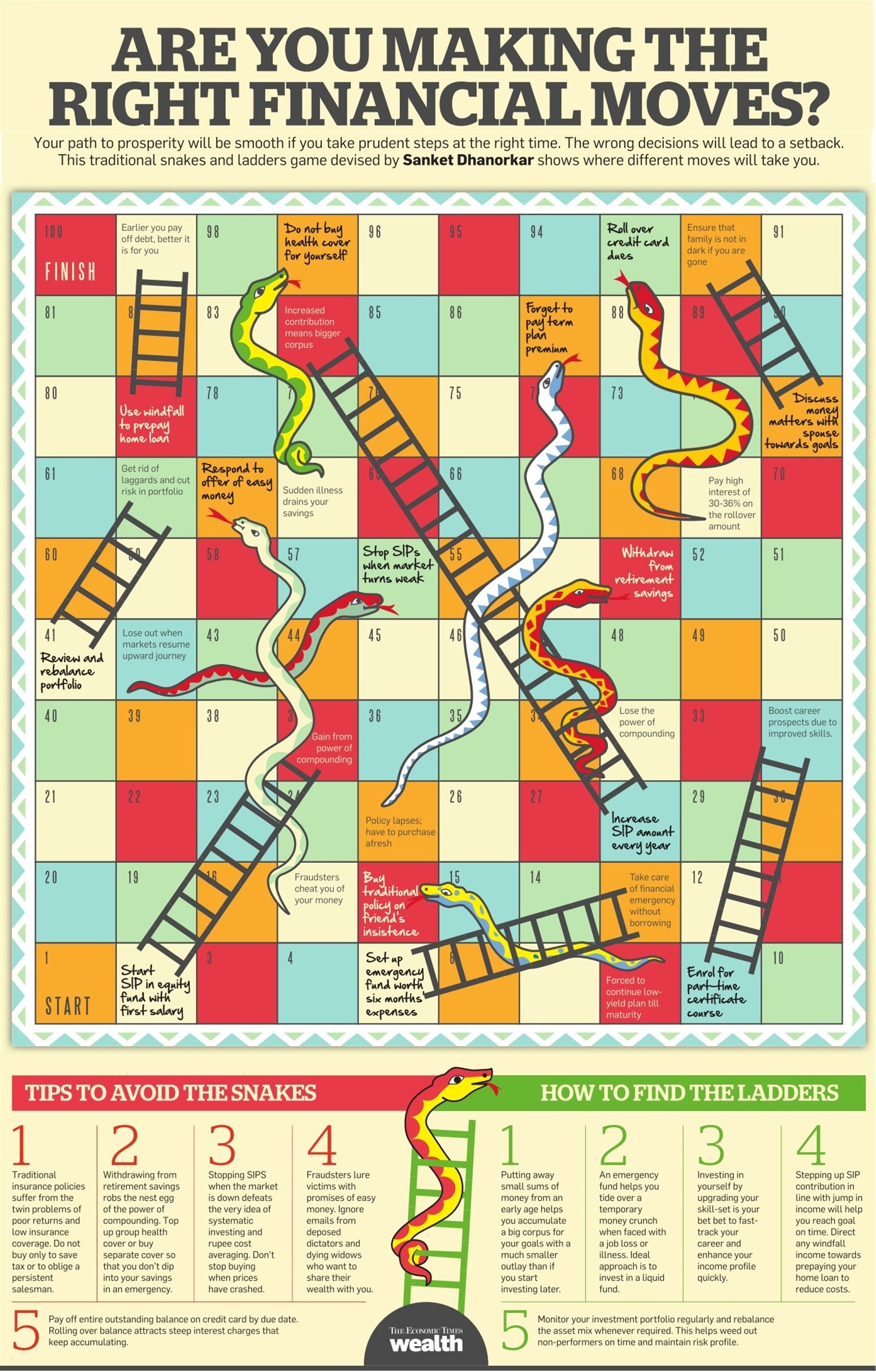 Your path to prosperity will be smooth if you take prudent steps at the right time. The wrong decisions will lead to a setback. This traditional snakes and ladders game devised by Sanket Dhanorkar shows where different moves will take you.